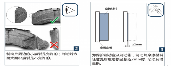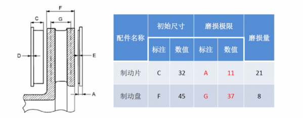 11、更換制動(dòng)片時(shí),若制動(dòng)盤磨損量在37mm-39mm時(shí)建議同制動(dòng)片一并更換,若制動(dòng)盤損壞需更換時(shí),建議制動(dòng)片也一并更換。