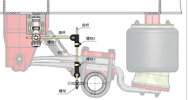 3、首次重載運(yùn)行后應(yīng)對(duì)板簧梁U型螺栓螺母、氣囊底座及頂板固定螺栓螺母、板簧梁主銷螺母進(jìn)行檢查緊固。