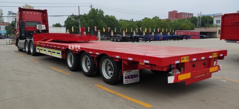 歐陽華俊13.75米低平板半掛可按客戶要求設計為鋪底槽,方便走叉車配置,也可按客戶要求設計為拉挖機配置,滿足實際貨物運載需求。歐陽華俊掛,必屬精品!歐陽華俊掛質量經得起檢驗......