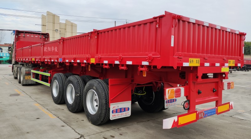 側翻自卸大概配置如下:外觀尺寸13米長×2.55米寬×2.9米離地高,墻板60公分高。當然尺寸也可按照客戶需求定制,可左右側翻,上下可打開。采取多種打開裝卸方式,將側翻自卸的優勢得到淋淋盡致的發揮。