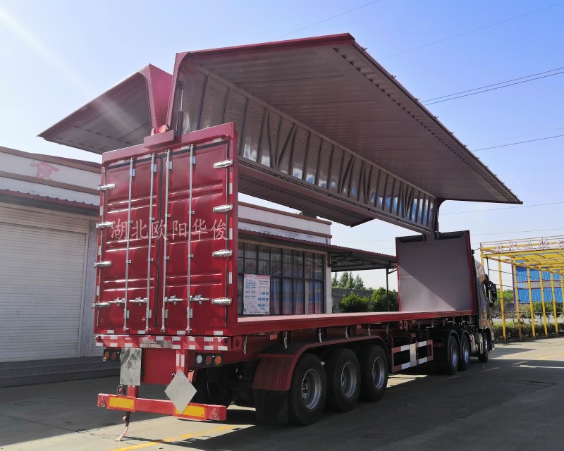 2021年主推車(chē)型:各大物流公司喜愛(ài)的一款飛翼半掛車(chē),免去蓋篷布的煩惱。隨著我國(guó)物流行業(yè)的快速發(fā)展,翼開(kāi)啟廂式車(chē)、飛翼半掛車(chē)以其方便快捷的裝卸方式,越來(lái)越受到客戶的青睞。下面和小編一起看看歐陽(yáng)華俊生產(chǎn)的飛翼半掛車(chē)吧!