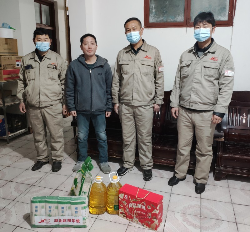 湖北歐陽華俊總經理歐總、生產部徐部長、袁部長等人將大米、面食、油等慰問物資送到了困難職工家中,為寒冷的冬天帶來了別樣的溫暖。
