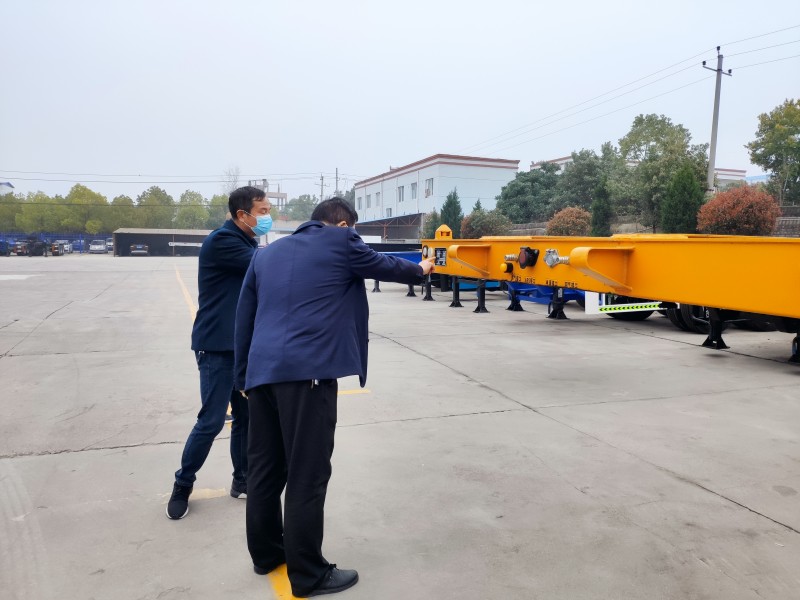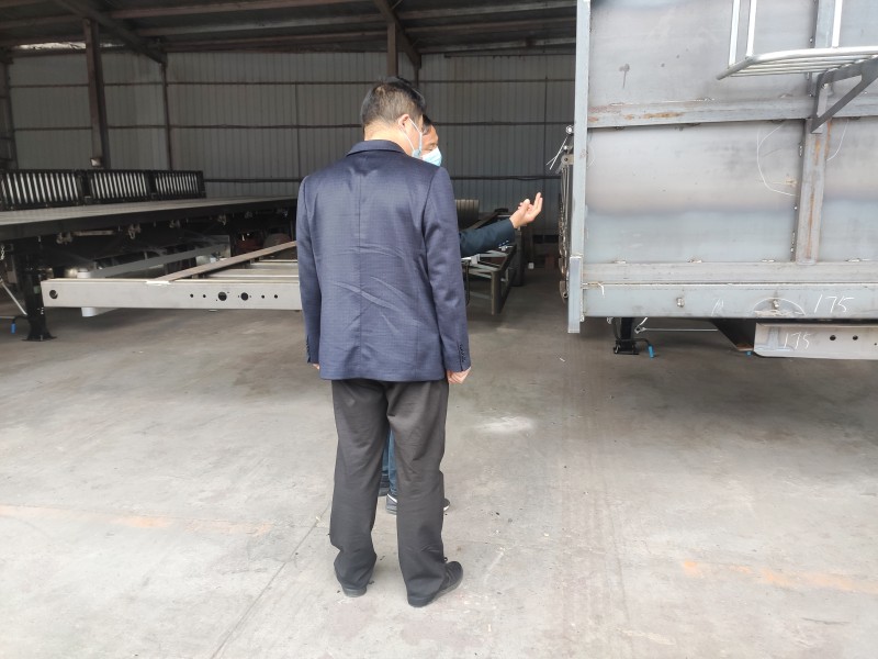 楊局長了解半掛車生產工藝,對半掛車品質給予肯定。