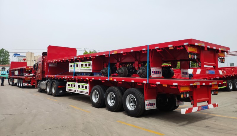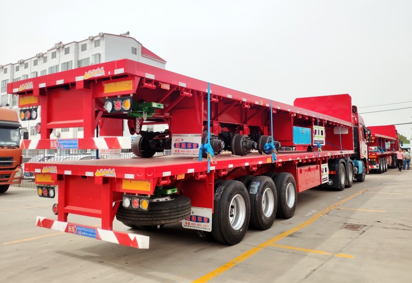 華俊13米平板半掛批量發往咸寧,奔赴財富大道