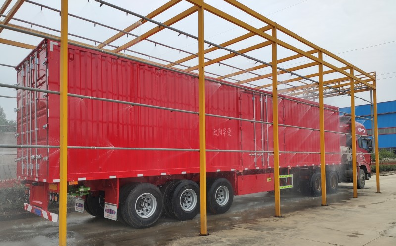 常年跑車難免遇到暴雨天氣。大家對廂式系列半掛車是否漏水的問題特別關心,為了讓大家放心廂式系列半掛車的防水效果,歐陽華俊生產的所有廂式系列半掛車由質檢部檢驗測試是否漏水,每排噴頭全開,模擬中雨、大雨、暴雨的情況對廂體進行噴淋。淋水試驗完成后,車廂內部干干凈凈,沒有任何水點痕跡。