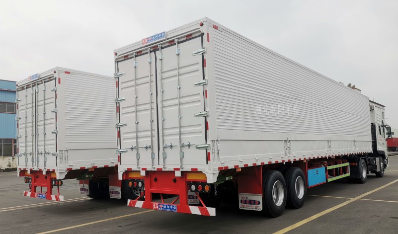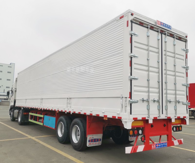13米兩軸飛翼半掛車交付天津客戶,帶墻板的全飛樣式