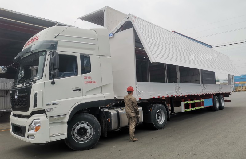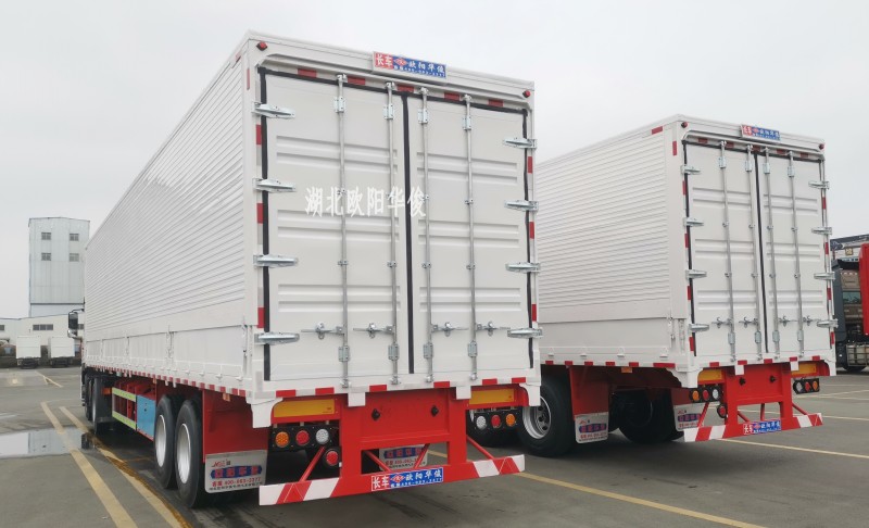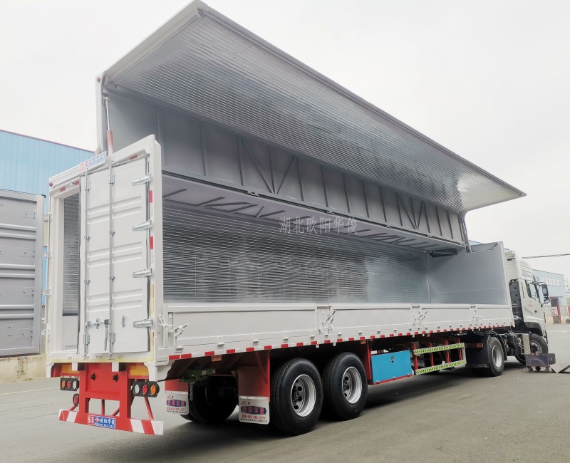 對翼開啟廂式半掛車,歐陽華俊還可定制生產(chǎn)12米、12.5米、13米、13.58米、13.75米等不同長度規(guī)格(2軸或3軸),2.55米寬,總離地高不超4米,均有公告營運資質(zhì),可上新戶。歡迎廣大新老客戶來廠考察洽談~