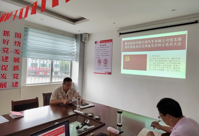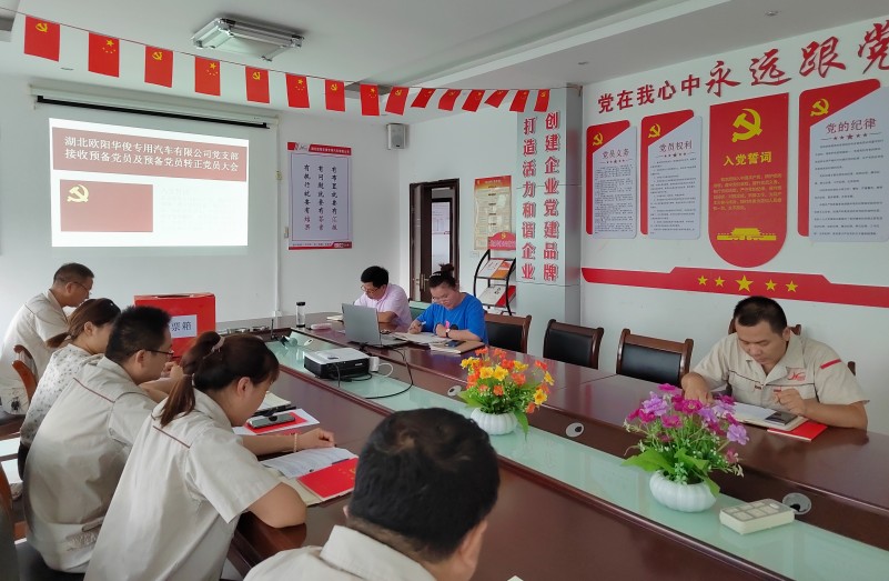為健全和完善公司黨支部組織建設,做好黨員的發展工作,7月19日下午,湖北歐陽華俊黨支部組織召開支部黨員大會,會議討論和票決是否接收一名同志由發展對象轉為中共預備黨員及三名預備黨員轉正。公司黨支部書記、全體黨員等10余人參加了會議。