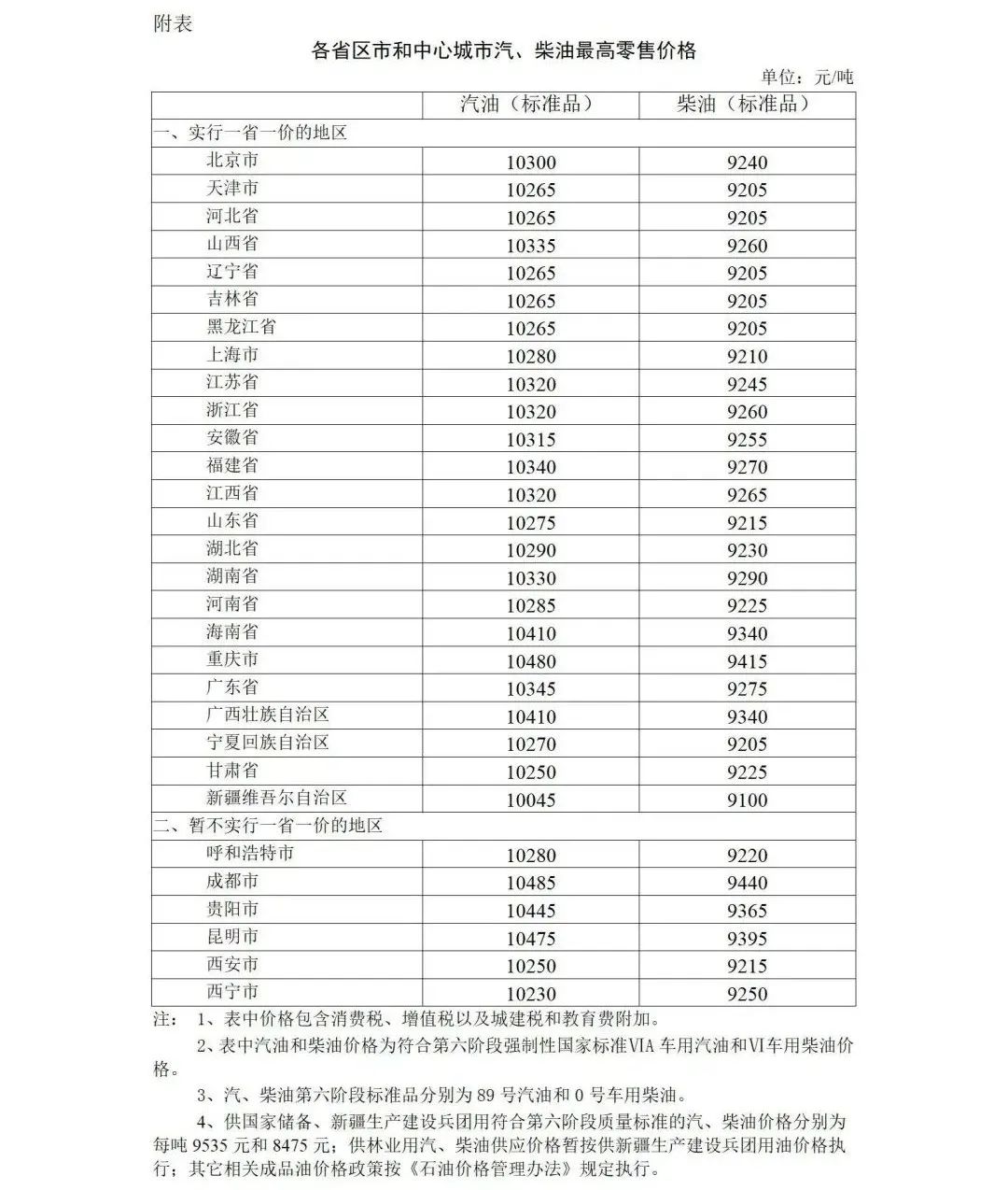 據發改委官方消息,根據近期國際市場油價變化情況,按照現行成品油價格形成機制,自2022年8月23日24時起,國內汽、柴油價格(標準品,下同)每噸分別降低205元和200元。調整后,各省(區、市)和中心城市汽、柴油最高零售價格見附表。相關價格聯動及補貼政策按現行規定執行。