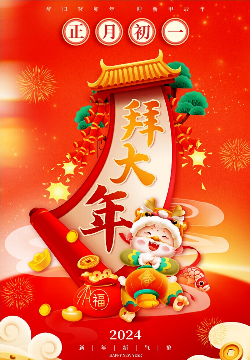 新年鐘聲響,好事隨你想,今天是甲辰年正月初一,歐陽華俊給您拜年啦!愿您快樂地過好新年里的第一天,鐘聲會把我最真、最誠的祝福,帶給最可愛的您!