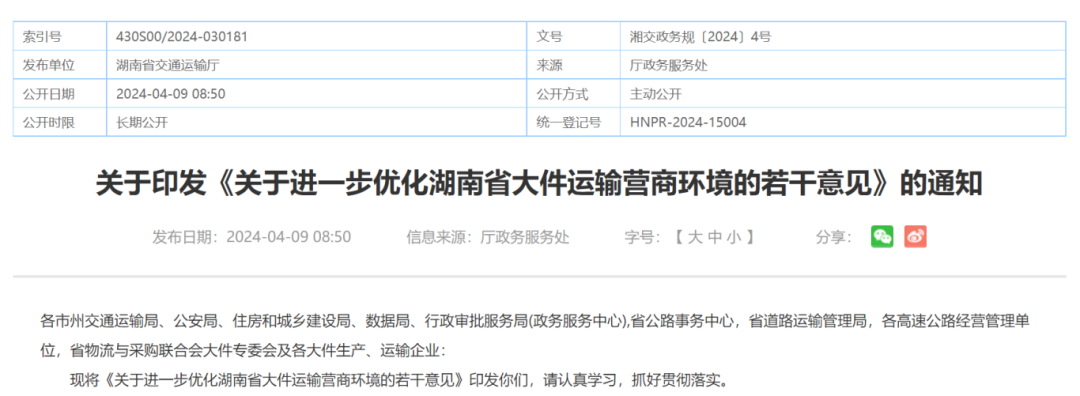 發布日期:2024-04-12 03:38:11 編輯:歐陽華俊 瀏覽量:1406日前,湖南省交通運輸廳聯合省公安廳、省住房和城鄉建設廳、省數據局在全國率先出臺了《關于進一步優化湖南省大件運輸營商環境的若干意見》。破解了企業和群眾重點關注的“空車上不了高速”“實際裝載與申報數值存在細微偏差的大件運輸車不放行”等問題。