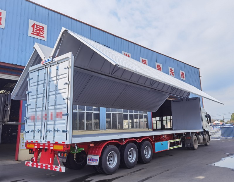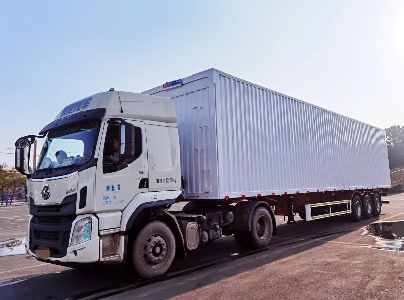 出廠前進行試飛及淋雨試驗,翼開啟廂式半掛車快遞物流助力軍,省時省力,運輸利器。