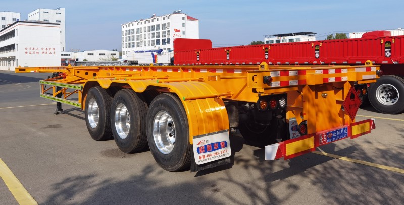 有20英尺、40英尺、45英尺兩軸或三軸危險品骨架半掛車,不同長度,滿足你的裝貨需求~