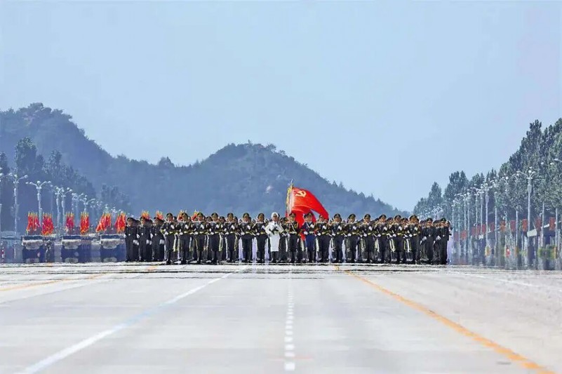 在黨旗、國(guó)旗、軍旗引領(lǐng)下