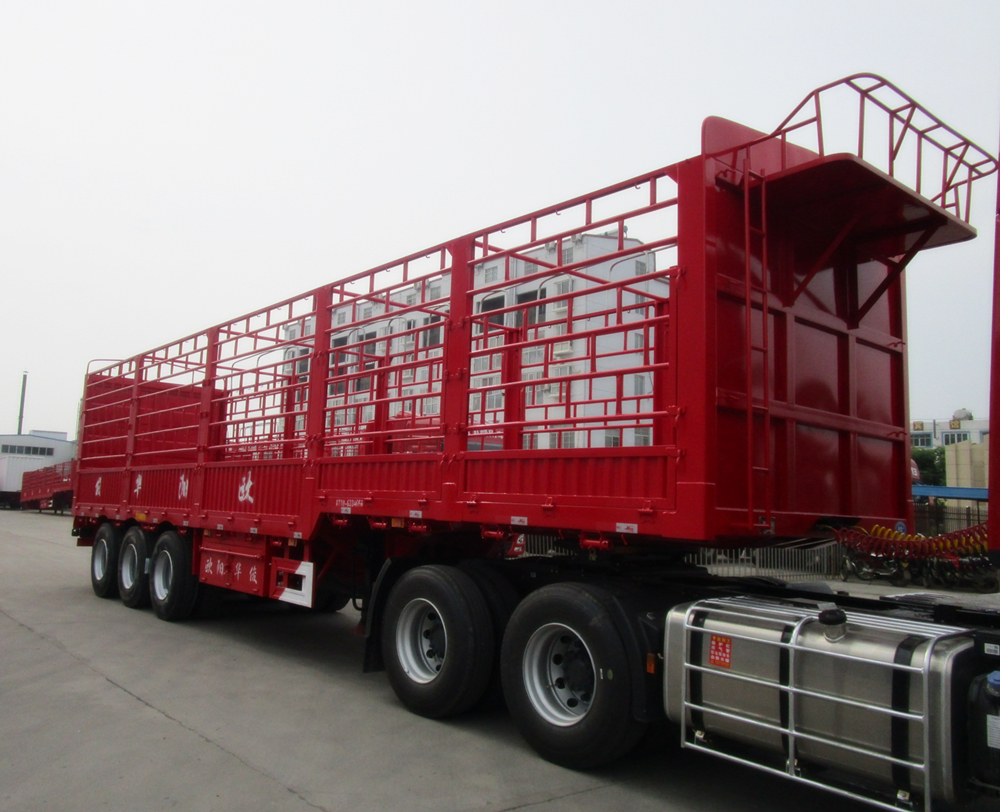 倉柵式半掛車主要分為直梁式和鵝頸式兩種類型;倉欄高度可做為1.6米、1.8米、2米、2.2米等規格定做不同樣式,后開門樣式分為:對開門、墻板加花籃、墻板加對開門等。