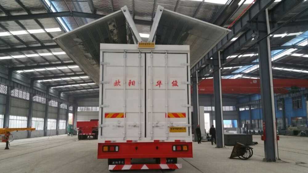 【結構設計】:在普通廂式車的改進而來,通過動力彈簧、手動裝置或液壓裝置, 能開啟車廂兩側翼板的專用車輛,展開后能超大程度的利用車體內的使用空間,并能夠快速展開和收起,內部空間寬大舒適。