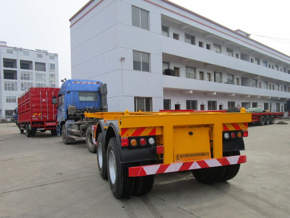 骨架式集裝箱半掛車即載貨部位為集裝箱結構的半掛車,主要有40英尺骨架、45英尺骨架等,一般都帶有鎖具。
