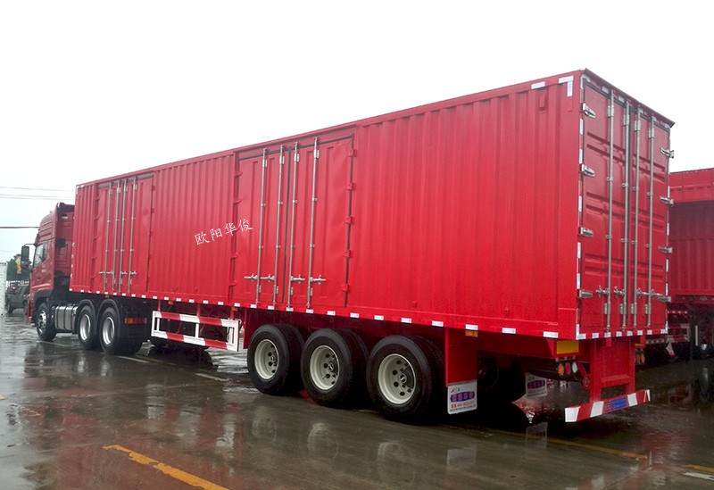 按照需求設(shè)計車廂頂部封閉,不可開啟,左右兩側(cè)各開2對2.7米對開門,左右錯開,方便卸載貨物的同時,保證了車輛的密封性。