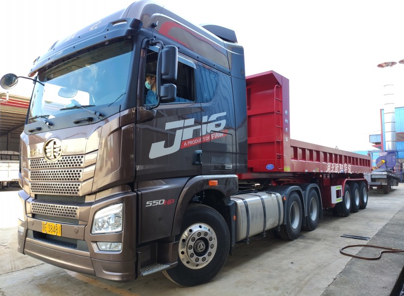 歐陽華俊12年來在半掛車生產領域擁有出色的制造工藝,收獲了大量客戶的芳心。其中江西九江鄭總就對歐陽華俊半掛車品質信賴有加,一次訂購了4臺平板半掛車,2臺13米平板半掛車背車2臺11米平板半掛車發車江西九江,節約了成本和運費。 2臺平板
