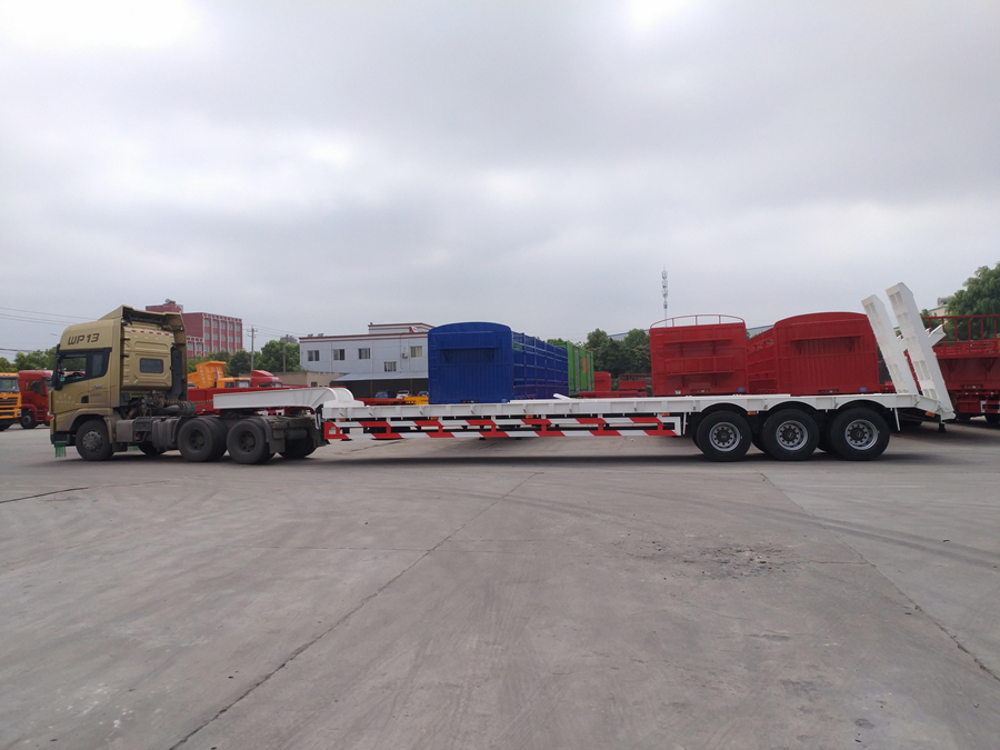 今日,歐陽華俊出口到海外的低平板半掛車順利交接,為下半年的海外出口市場樹立了良好的開端!據小編了解,此車長度為16.5米,寬度為2.5米,外加2X0.25米的延伸機構,工作平臺加裝12套懸鎖