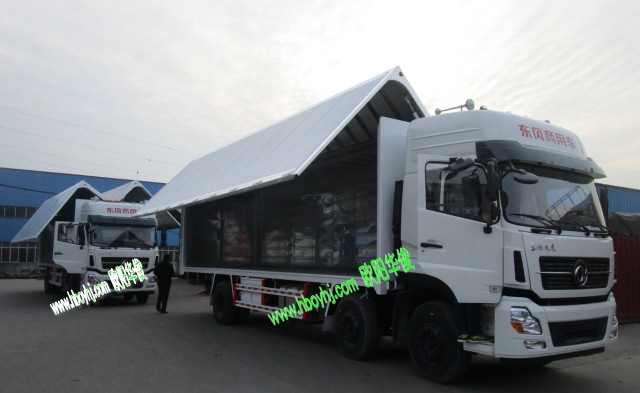 飛翼車廂(翼開啟廂式車)近幾年來成為大型物流公司運輸?shù)暮芗堰x擇,由于大量輕質(zhì)新材料應(yīng)用于飛翼車廂,使得車廂自重降低,加之車廂設(shè)計美觀,貨物運輸安全可靠,預(yù)計在高端物流運輸市場將會占有一席之地。飛翼車廂主要可用于汽車配件,紙張、家電、衣物、化工、飲料、食品等物品的運輸和配送。飛翼半掛車的車廂密封